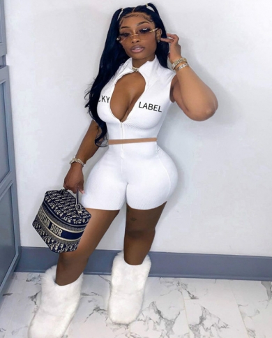 Two Piece Set Women Summer Clothes Letter Embroidery Sleeveless