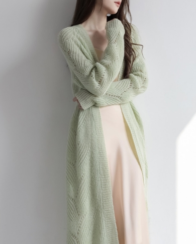 Hollow Knitted Long-sleeved Cardigan Womens New Style Mid-length Coat