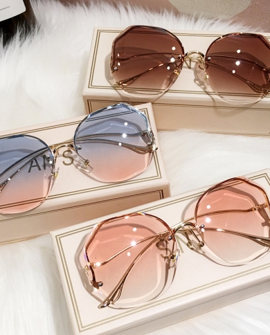 Rimless Sunglasses 2022 Seawater Cutout Glasses Women Men Sunglasses Metal