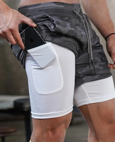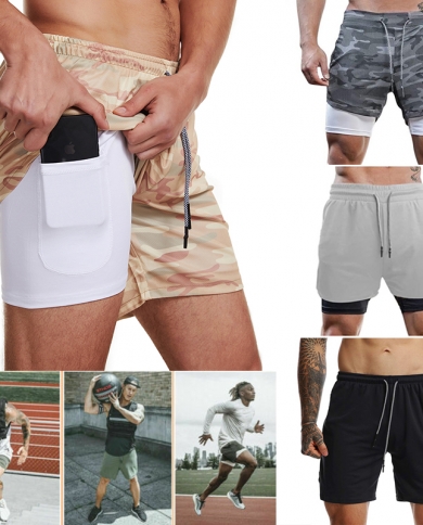 Mens 2 In 1 Running Shorts Gym Workout Quick Dry