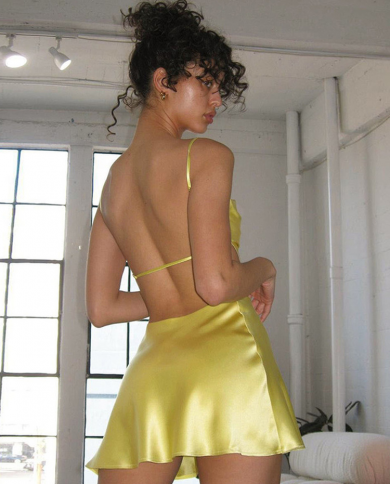 Summer Straps Backless Mini Dress For Women Elegant Yellow Sleeveless