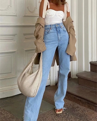 2022 Fashion Womens Jeans Bottom Casual Straight Leg Baggy