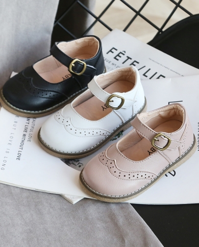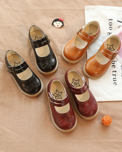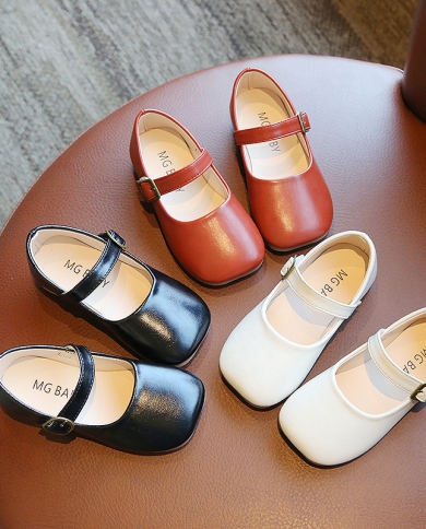 Girls Leather Shoes New Retro Square Head Childrens Soft Bottom
