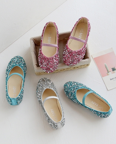 New Soft Bottom Sequined Girls Leather Shoes Princess Shoes