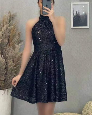 2022 Summer Maxi Dresses For Women Sequins Mid Waist Mid