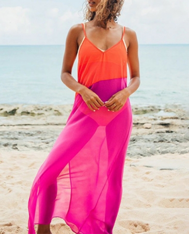 Patchwork Sling Loose Slit Seaside Long Dress Holiday Perspective