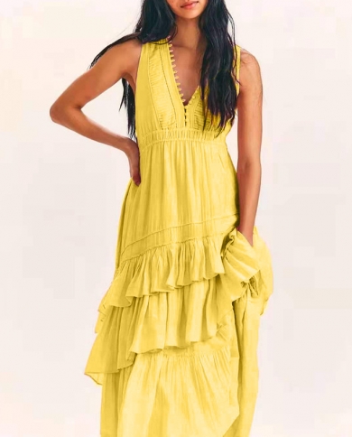 Light and Flowy Crinkled Linen Lace-Up Vintage Maxi Dress