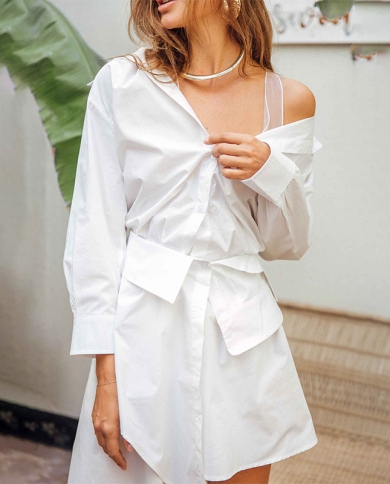 Womens Solid Color Fashion Sweet Mesh Irregular Personality One-shoulder Dress