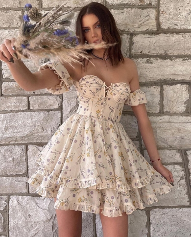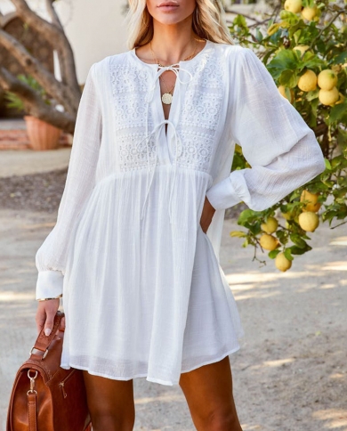 Womens Romantic Pastoral Style Cutout Wrap-breast Mini Dress