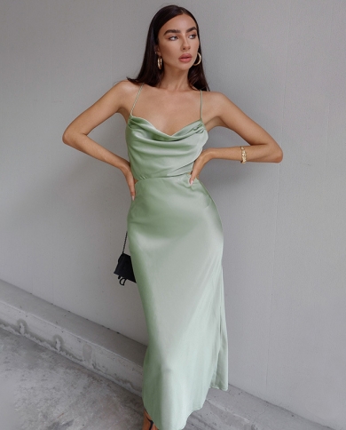 Womens Graceful Satin Slim Fit Halter Backless Dress