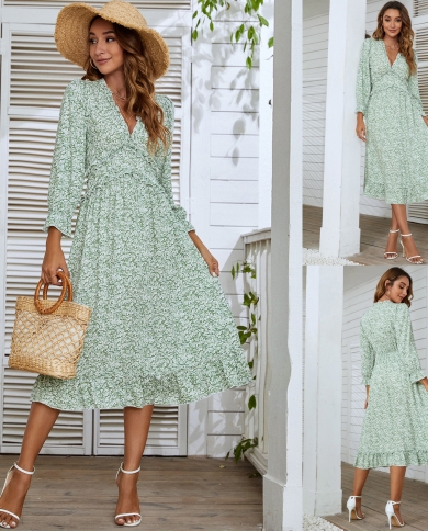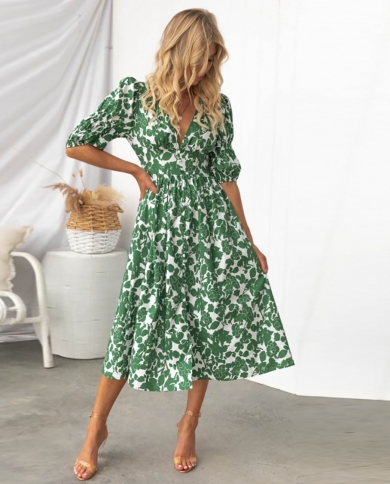 Summer New V-neck Loose Swing Dress