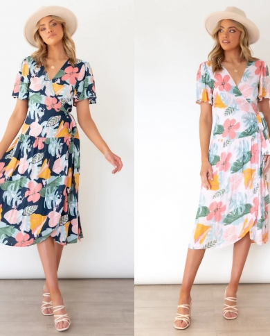 Summer New V-neck Short-sleeved Straps Holiday Dress