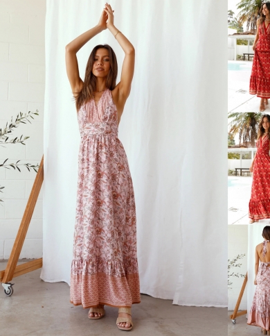 Womens Halter Neck Tie Backless Large Hem Dress