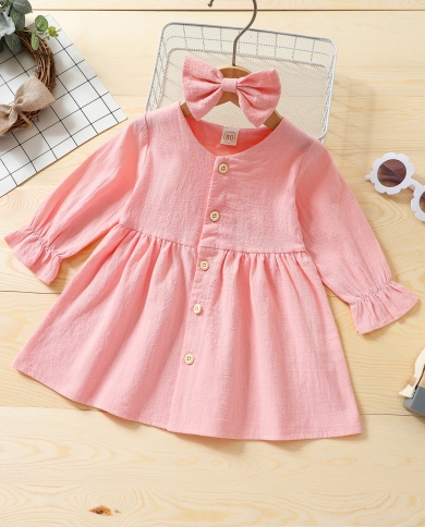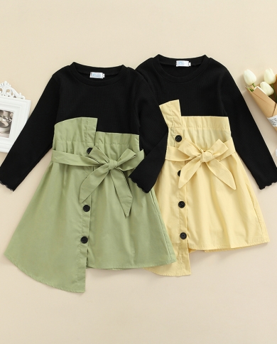 2pcs Kids Autumn Set Girls Dress Solid Color Lapel Long