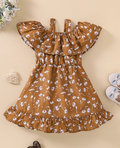 2 7 Years Fashion Girls Dress Floral Ruffle Off Shoulder