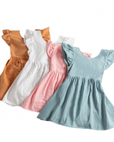 2 6y Girls Summer Pleated Fly Sleeve Dress Fresh Solid