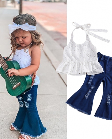 Fashion 1 6y Girl Clothes Summer 2pcs Halter Sleeveless Hollowed