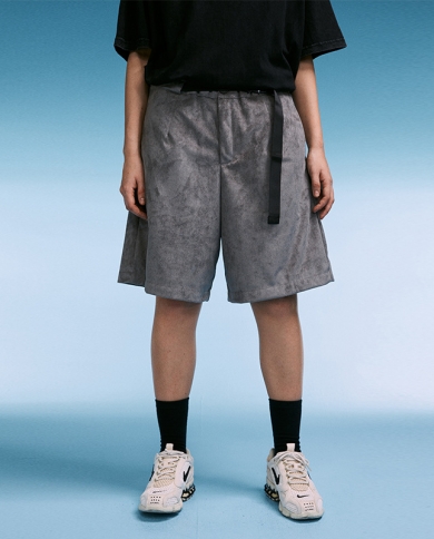 Mens Deerskin Loose Hip-hop Fashion Frock Shorts With Adjustable Buckle