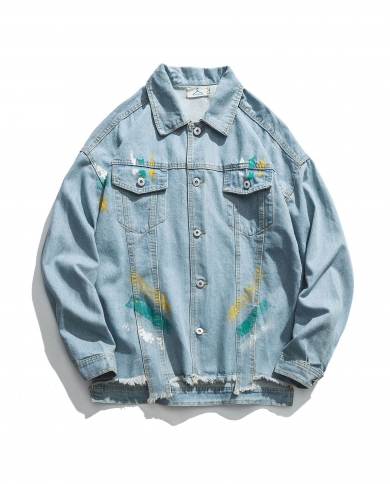 Mens Graffiti Denim Old Fashion Street Style Jacket
