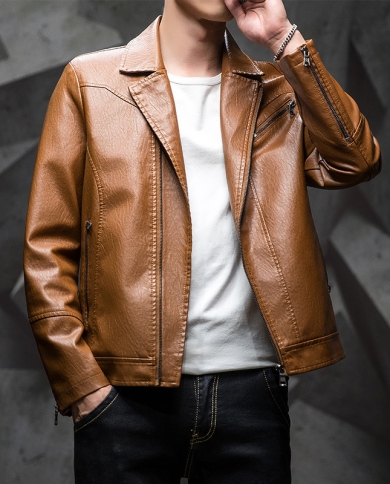 Mens Slim Casual Tailored Collar Fashion Leather Jacket