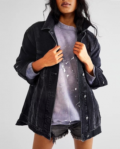 Casual Fashion Solid Color Denim Jacket Womens Tops Long-sleeved Single-breasted