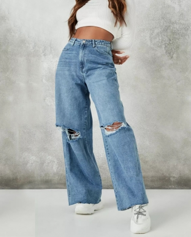 New Casual Wide Leg Womens High Waist Jeans