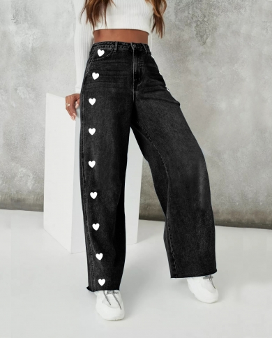 Retro Washed Loose Wide Leg Boyfriend Wind Couple Heart Jeans