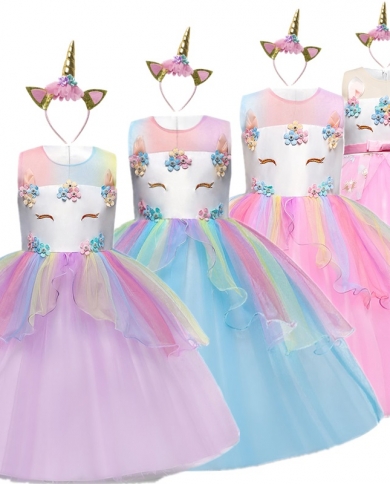 Child Girl Unicorn Dress Elegant Dress For New Year