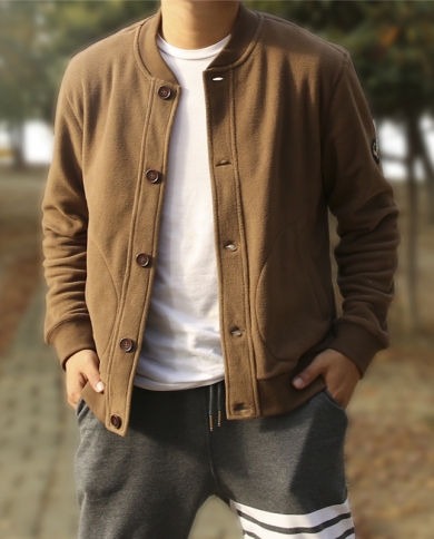 Mens Bomber Jacket Retro Fleece Baseball Jacket Autumn And