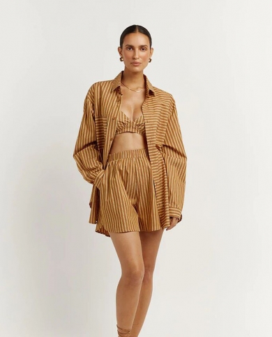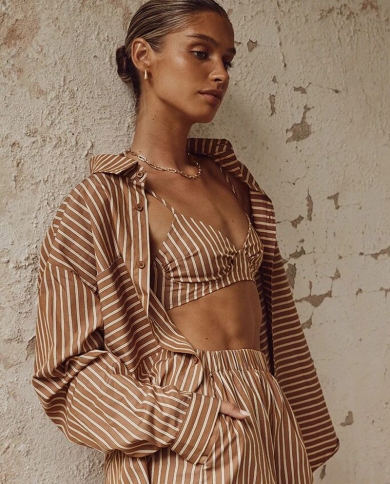 New Ladies 2 Color Striped Long Shirt Jacket