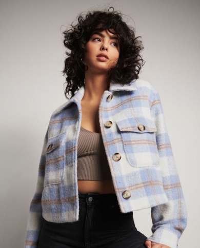 New Ladies 2-Color Plaid Wool Short Jacket