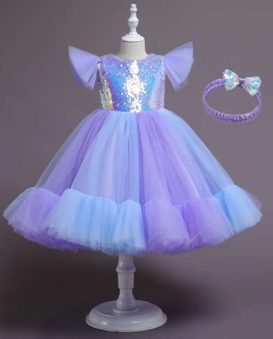 Girls Dress 2 10y Flying Sleeve Sequined Princess Dress