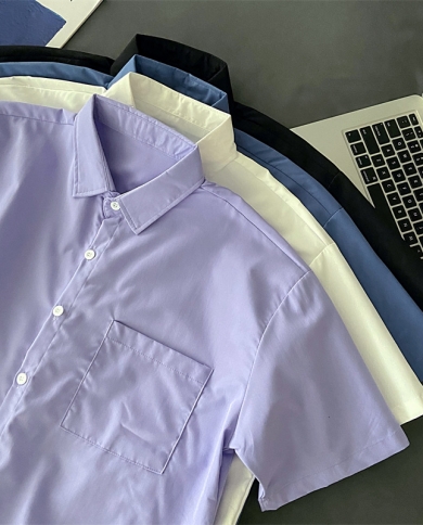 Ebaihui Spring Autumn 2022 Men Solid Shirts Vintage Blouse