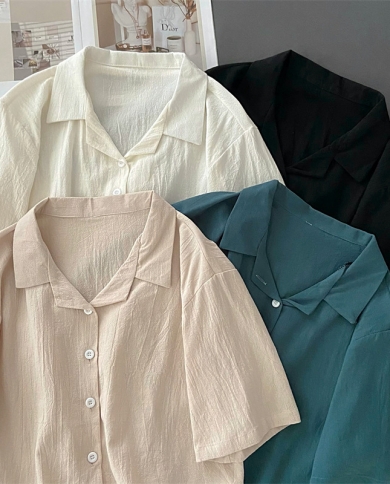 Ebaihui 2022 Short Sleeve Shirt Women Turn Down Collar