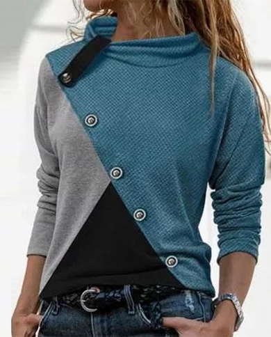 2022 Spring Womens Blouse Single Breasted Irregular Hem Commute