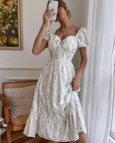 Liti Elegant Women Summer Dress Square Collar Floral Dress