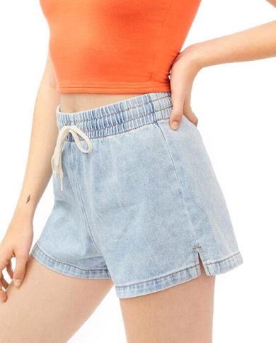 2022 Summer Blue Denim Shorts Women All Match Sashes