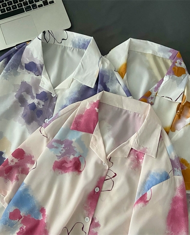 Ebaihui 2022 Summer Blouse Shirt For Women Flower Ink