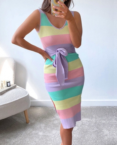Summer Knit Dress 2022 Women Spilit Sleeveless Bandage