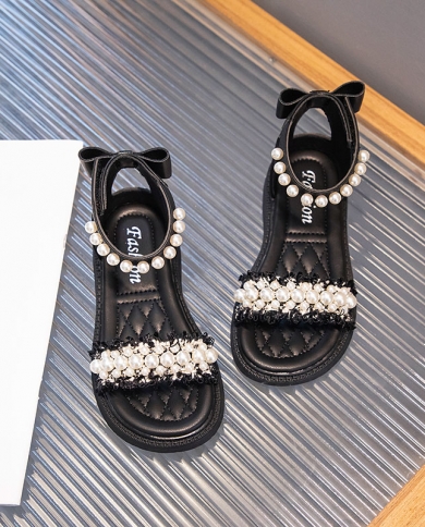 Girls Sandals 2022 Summer Childrens Fashion New Simple Pearl
