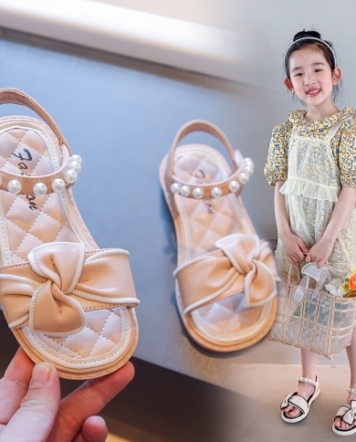 Children Open Toe Pu Bow Plus Pearl Temperament Princess