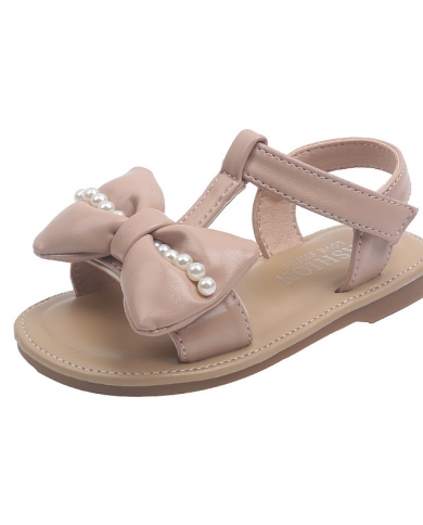 Children Pink Big Pu Bow Pearls Open Toe Simple