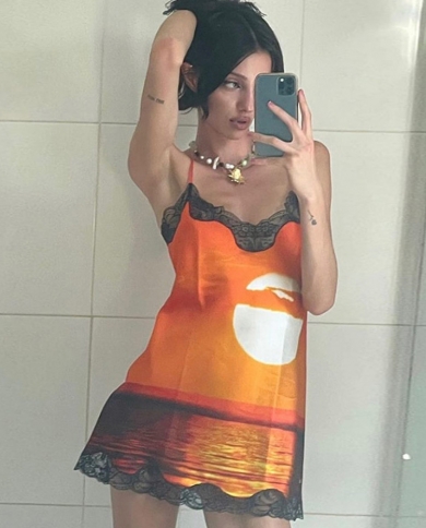 Hirigin Spaghetti Straps Dress Summer Women Mesh Dress Sash