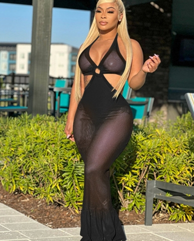Hirigin Party Mesh See Though Halter Neck Sleeveless