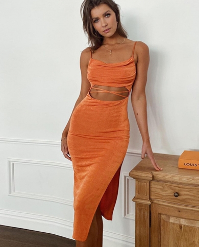 Hirigin Halter Cut Out Corset Dress Spaghetti Strap