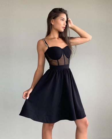 Hirigin 2022 Summer Elegant Chain Straps Mesh Sheer Mini