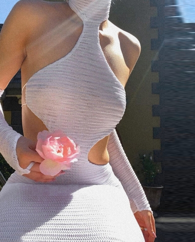 Hirigin Hollow Out Dress For Women Halter