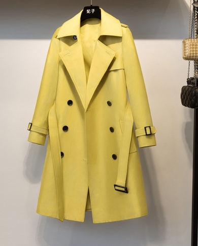 2022 Autumn Long Casual Woman Double Breasted Trench Coat Loose