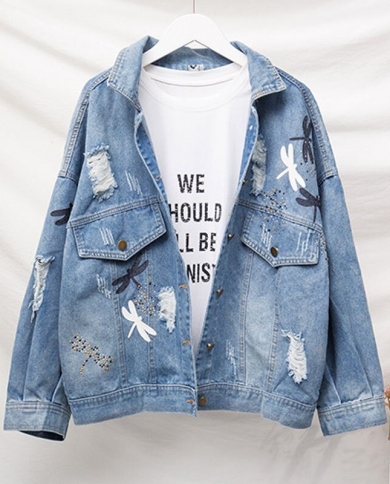 2022 New Autumn Denim Jacket Loose Hole Jeans Jackets Turn