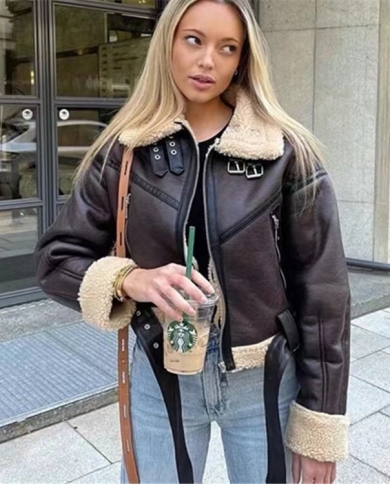 2022 Womans Fashion Thick Warm Faux Shearling Jacket Coat Vintage